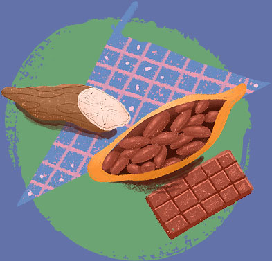 Mandioca no Brasil; Yuca, Tabaco e Coca na Bacia Amazônica; Milho na Mesoamérica; Cultivo de arroz na Indonésia.